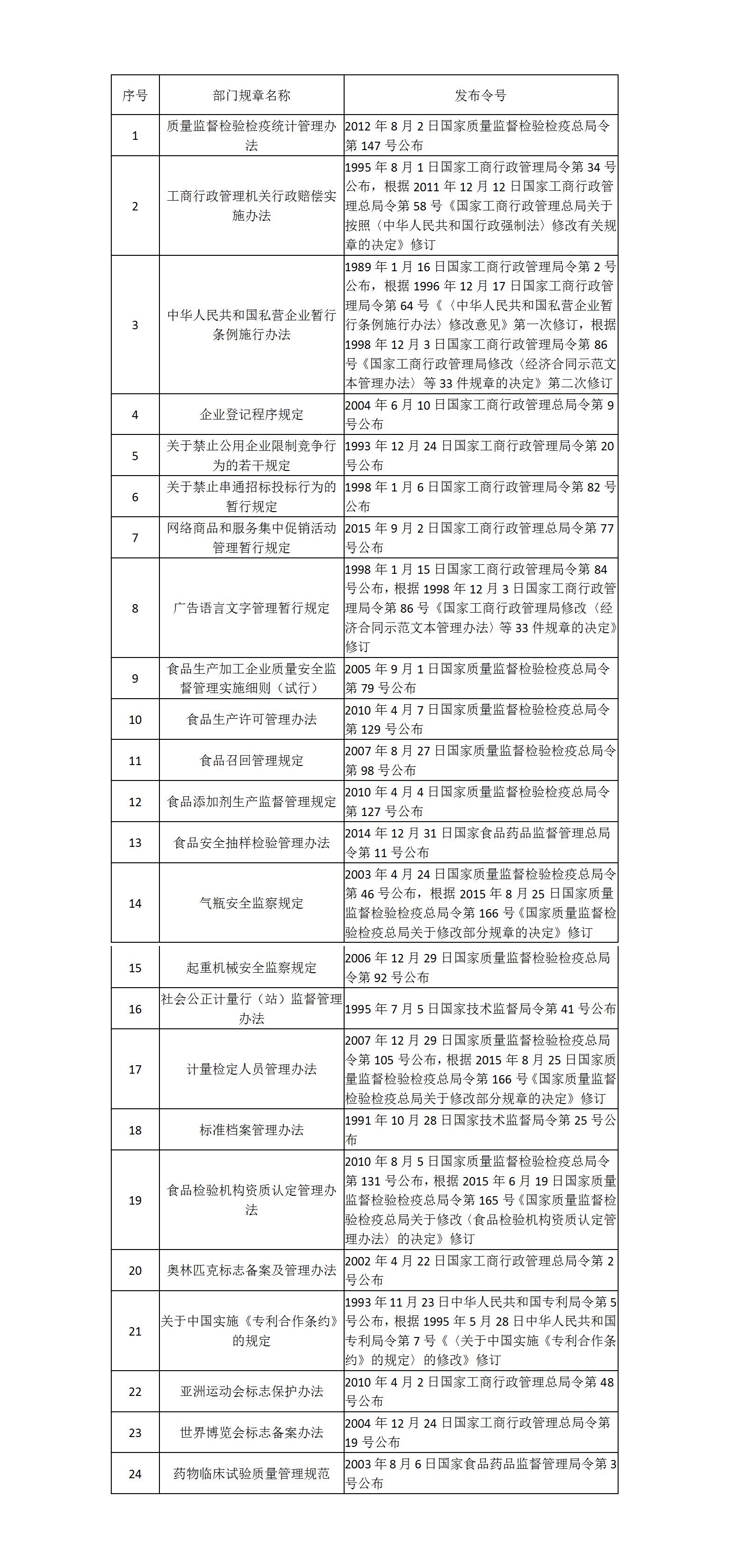 为进一步深化机构改革,优化营商环境,提升监管效能,国家市场监督管理总局对现行部门规章进行了清理。经过清理,国家市场监督管理总局决定: