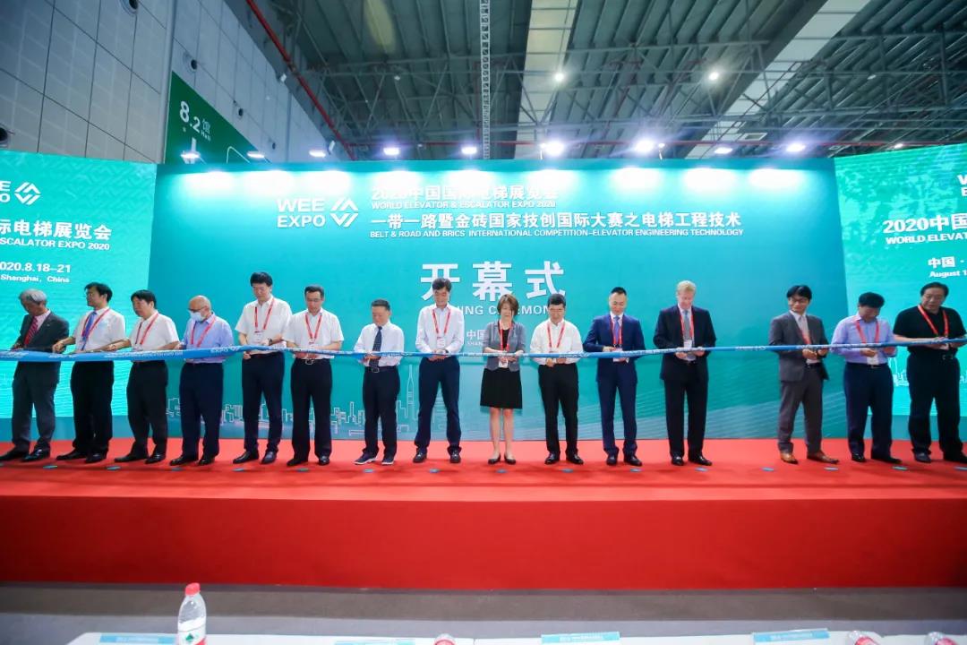 开幕式致辞结束后,电梯行业领导和嘉宾为2020中国国际电梯展览会