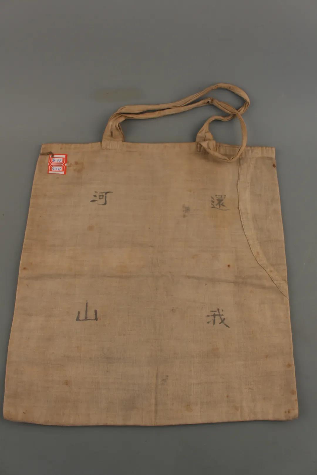 “还我河山”,车向忱夫妇用过的手提兜上,四个字依然清晰。“九•一八”事变后,东北沦陷,教育家车向忱多次往返关内外,积极组织抗日救亡运动,还创办了许多平民学校。这个手提兜原为白色,历经岁月和战火,现已陈旧发黄。布兜正面绣有黑色“收复东北失地,1938”字样,背面写有“还我河山”字样。