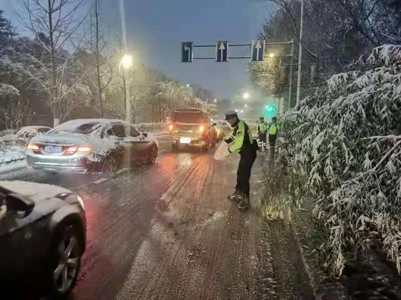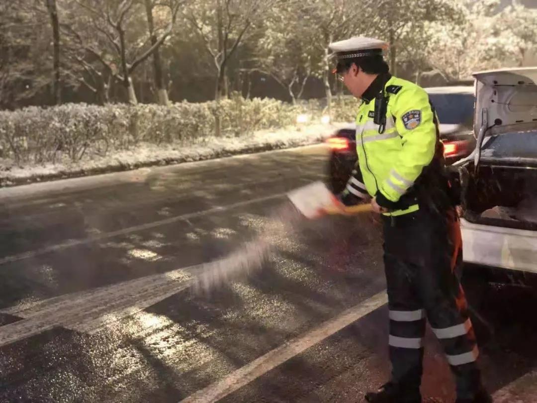 组织警力在上下坡易滑易发生事故路段撒盐