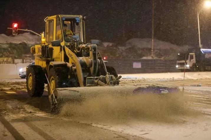 扫雪突击队进行机械扫雪