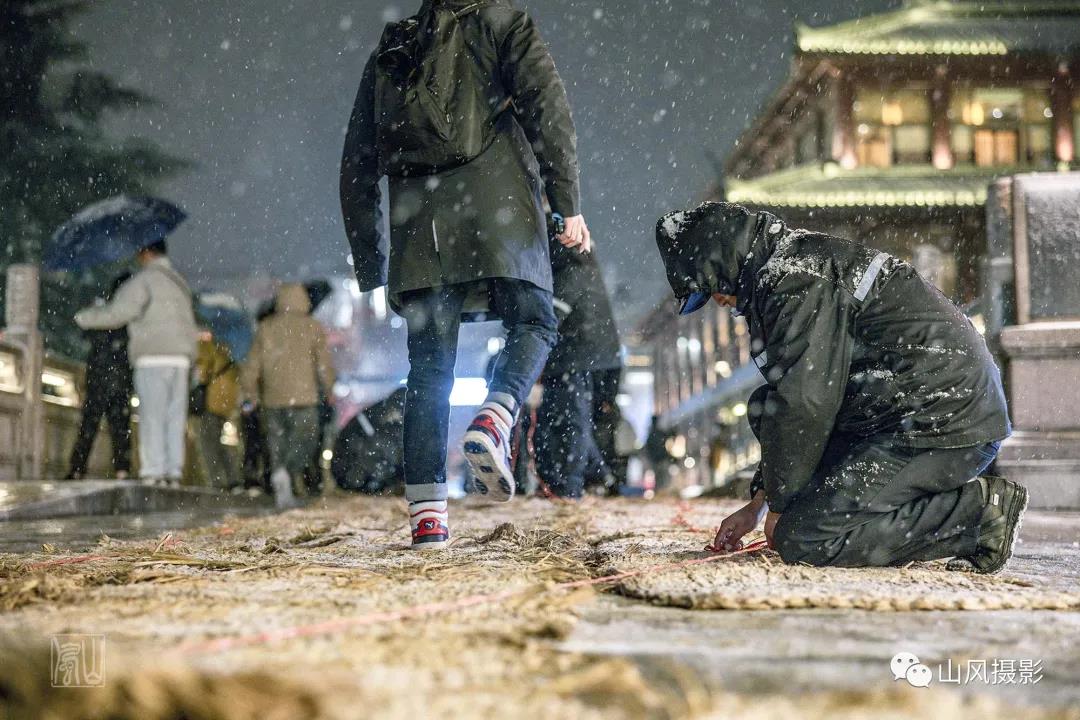 昨天傍晚,夫子庙景区已积雪