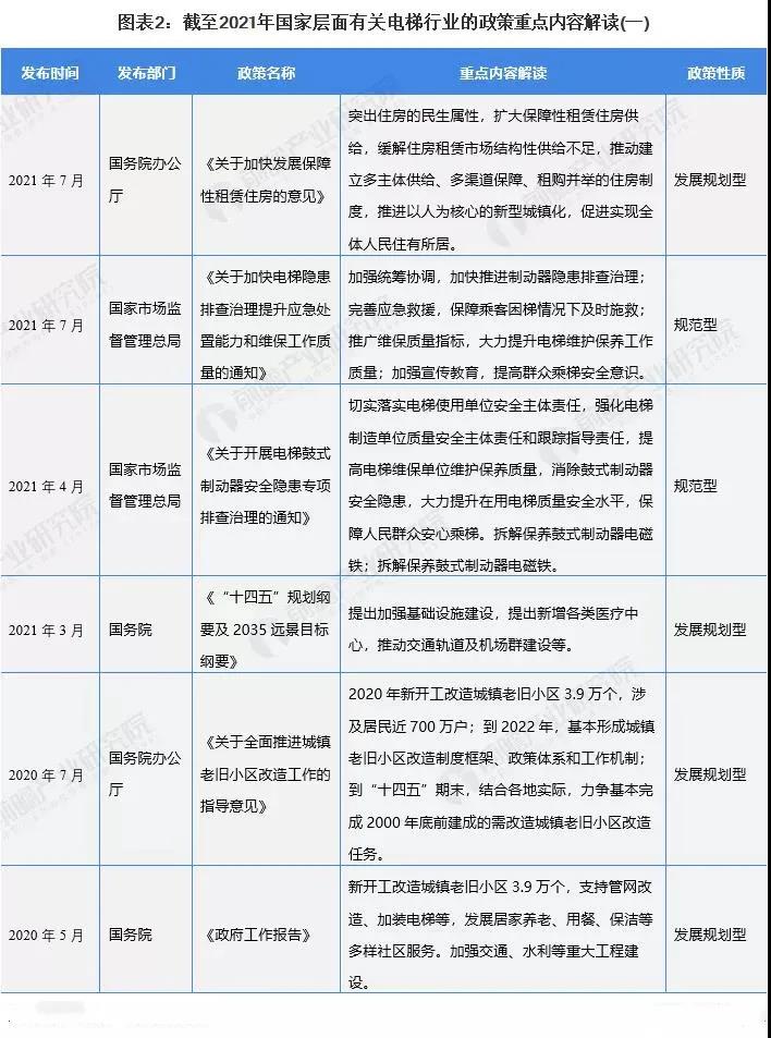 电梯对我国建筑业以及人们的生产、生活日常来说是必不可缺的一项特种设备。自2018年起,我国出台了各项政策推动了中国电梯行业的蓬勃发展。