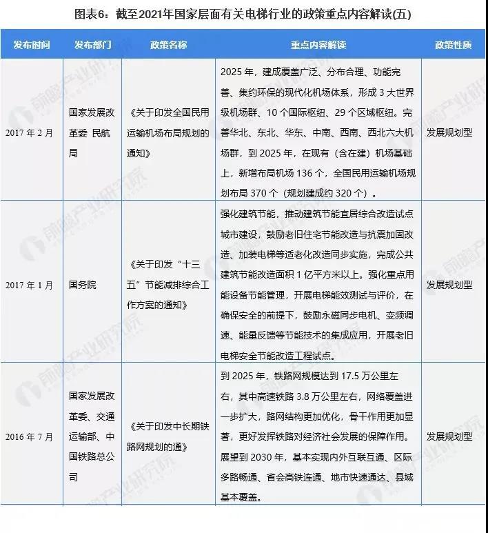 2、国家层面政策汇总及解读——国家层面电梯行业相关政策汇总