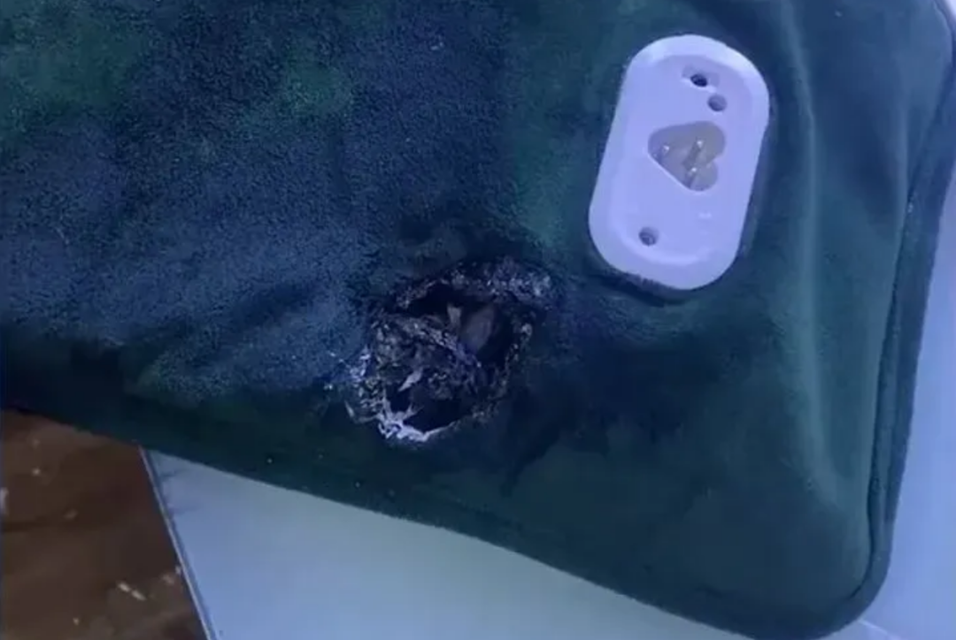 10月13日,内蒙古呼和浩特刘女士,刚充上三四十秒的暖水袋,突然起火燃烧。