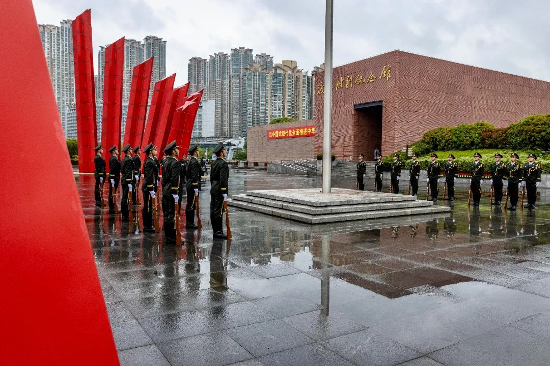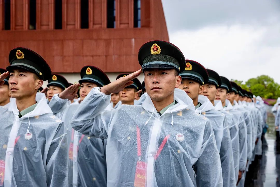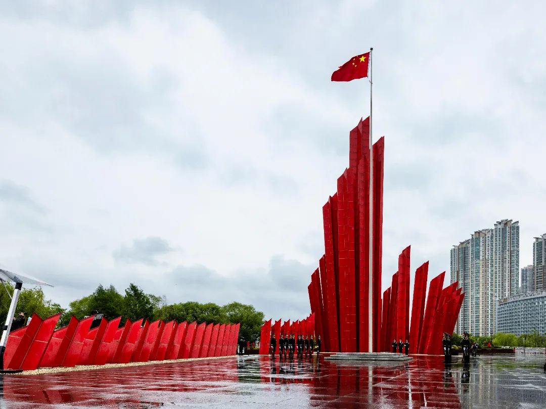 全体成员向冉冉升起的五星红旗肃立致敬,