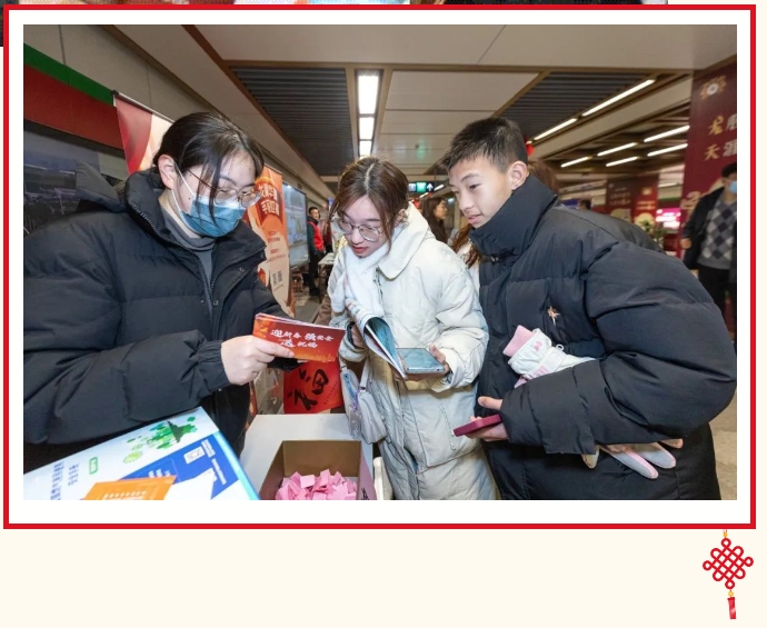 翰墨飘香热闹非凡,一旁的互动答题活动也吸引了不少乘客驻足参与,