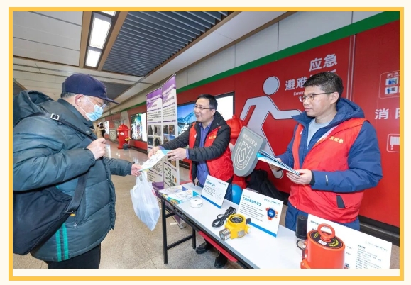 “宁小吉”党员志愿者服务队与港华燃气公司、南京供电公司的工作人员现场发放宣传册、借助实物讲解,